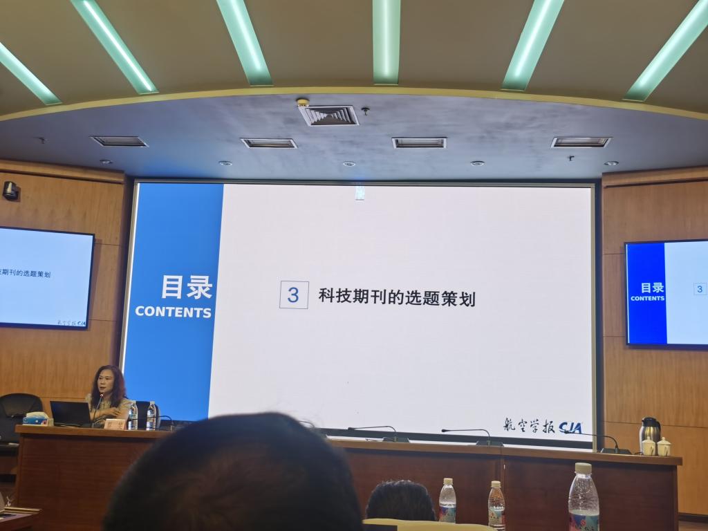 航空学报杂志社社长、《航空学报》《CJA》副主编蔡斐作了“科技期刊选题策划与案例分析”专题讲座,她围绕中国科技期刊发展面临的机遇与挑战、期刊的选题策划、打造高质办刊团队等方面作了经验交流与分享。蔡斐针对期刊办刊中稿源不足、稿件质量下降、优秀稿源外流、期刊稿件同质化等问题,提出了加强出版能力建设、提升学术引领能力、提升编辑策划与把关能力、提升出版服务能力等解决问题的重要途径。