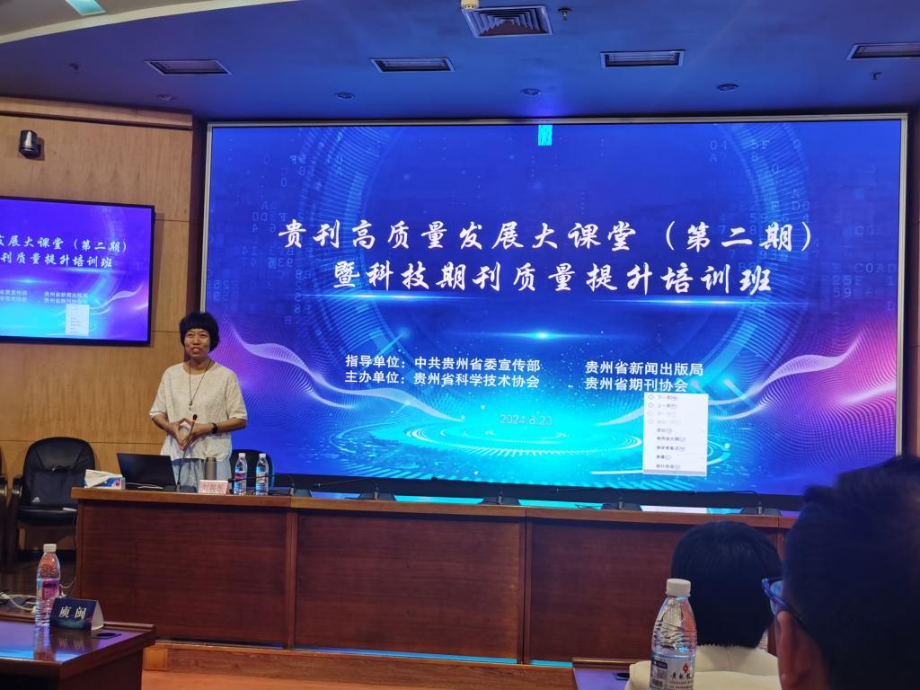 2024年8月23日,学报编辑部主任胡赤兵带领学报全体编辑参加了由贵州省科学技术协会和贵州省期刊协会联合主办的“贵刊高质量发展大课堂(第二期)暨科技期刊质量提升”培训。此次培训是在中共贵州省委宣传部、贵州省新闻出版局的指导举办的,旨在促进省内期刊业务交流,进一步提升期刊影响力,推动全省期刊高质量发展。